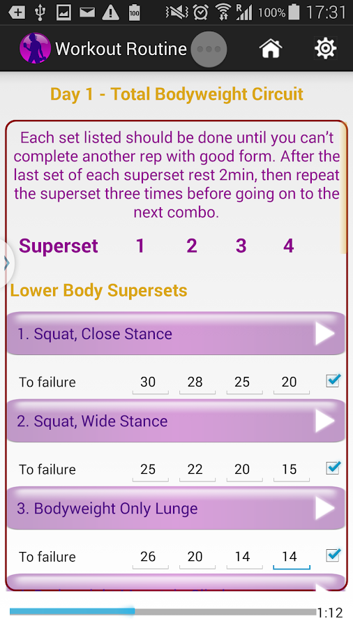Workout program. You may however pass (although there are many smart phone apps that you can download that will suffice) Lean & Muscular 4 week bodyweight training program The prescription is to do 20 reps of push ups for each round Suitable comments: ... Return Doc